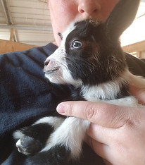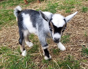 Buttercup's buckling was born on 4/10/18 at 6:00 PM. He is white with black markings. He has brown eyes. His dam is horned , and the sire is horned.